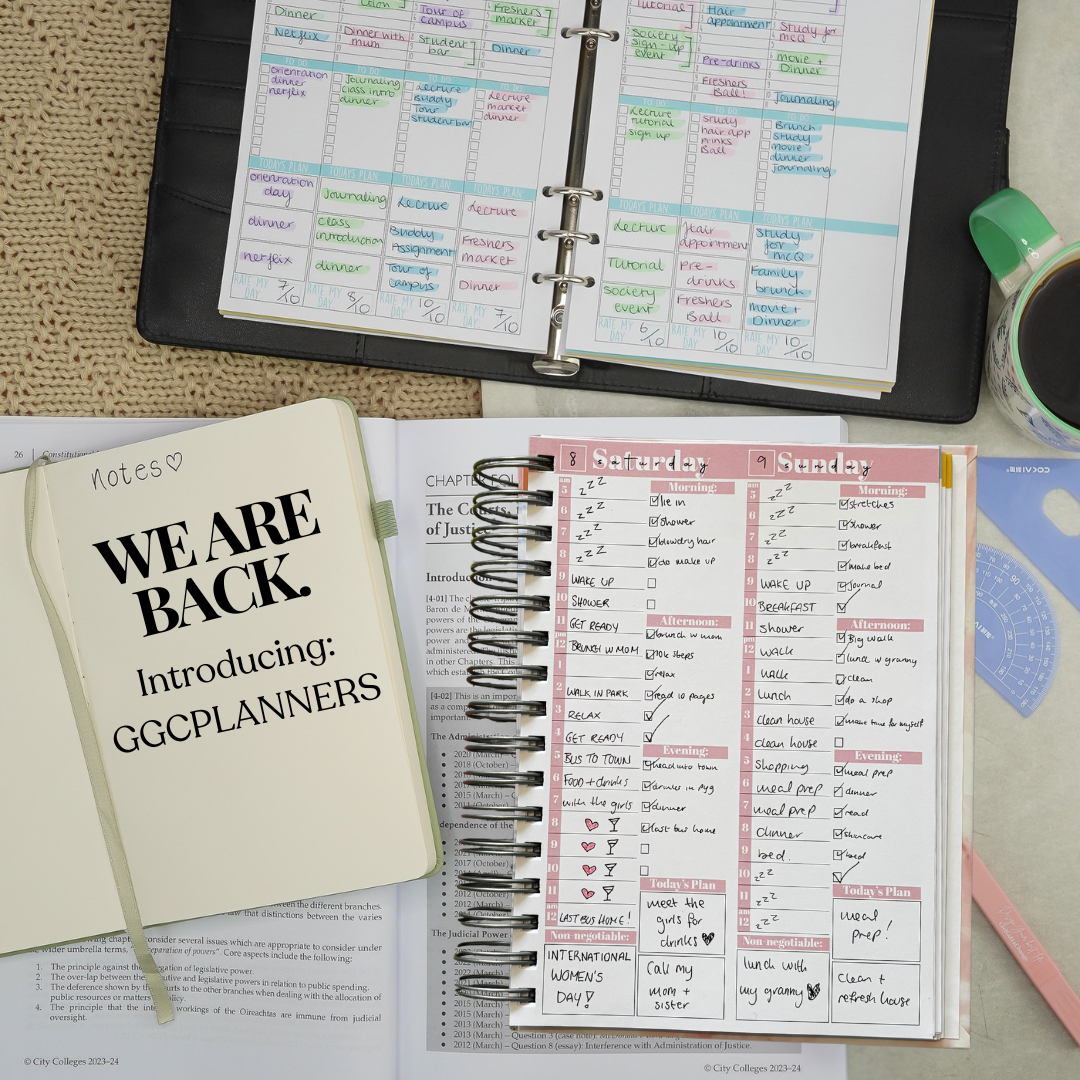 GGC planners are uniquely designed to be undated, allowing you to start and stop whenever you want without wasting any pages. They combine style with functionality, offering a balance between aesthetic appeal and practical features like grade trackers and customizable layouts, ensuring that your planning experience is both enjoyable and effective.
